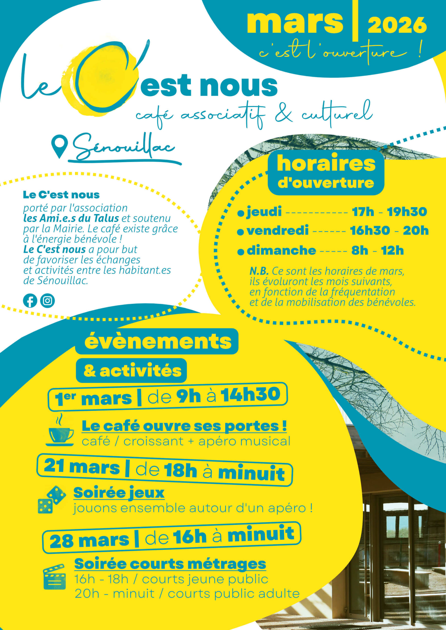 Ancré dans la vie du village et ouvert sur l’extérieur, Le C’est Nous est un lieu de rencontres, de passage et de partage.